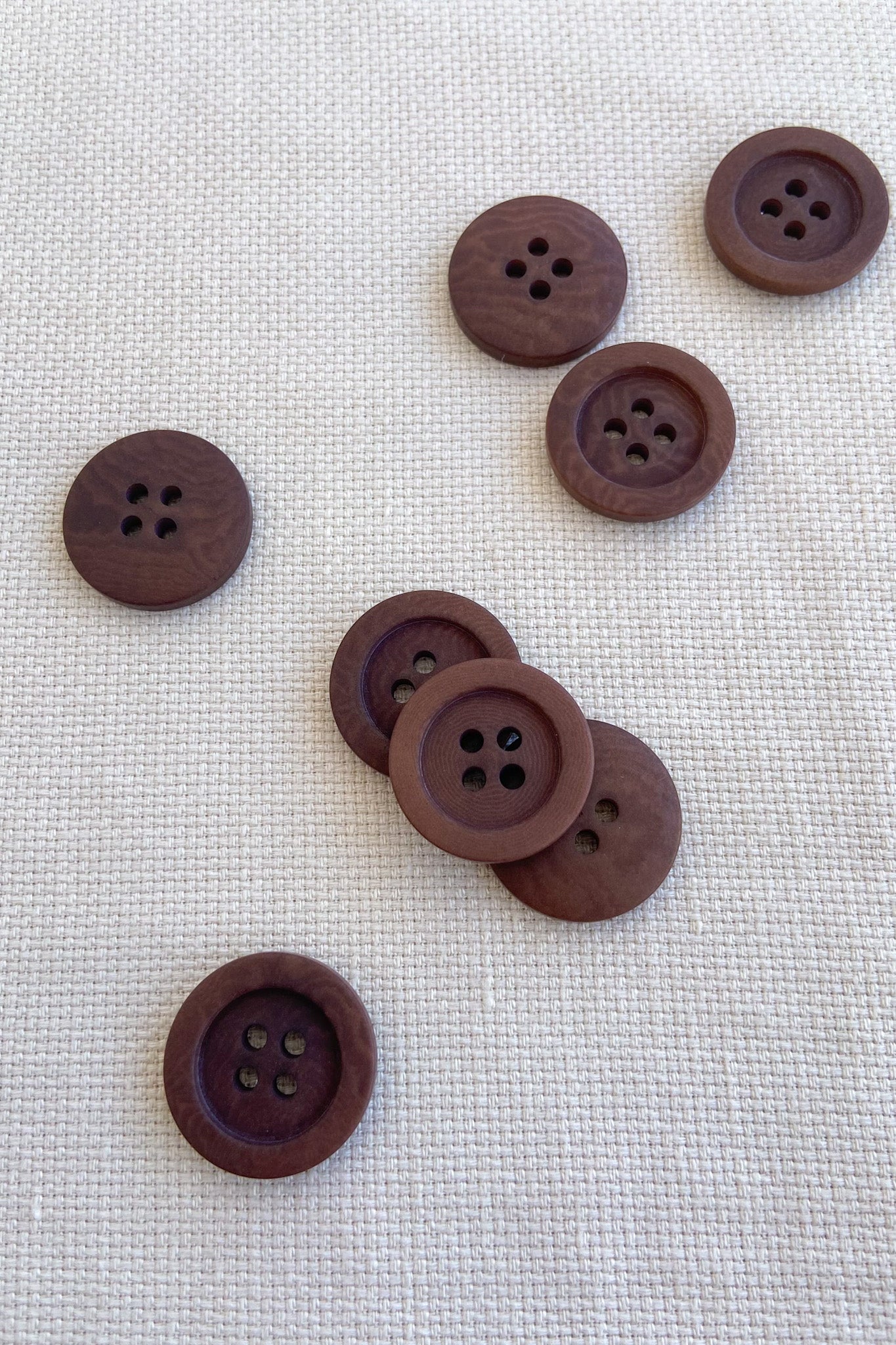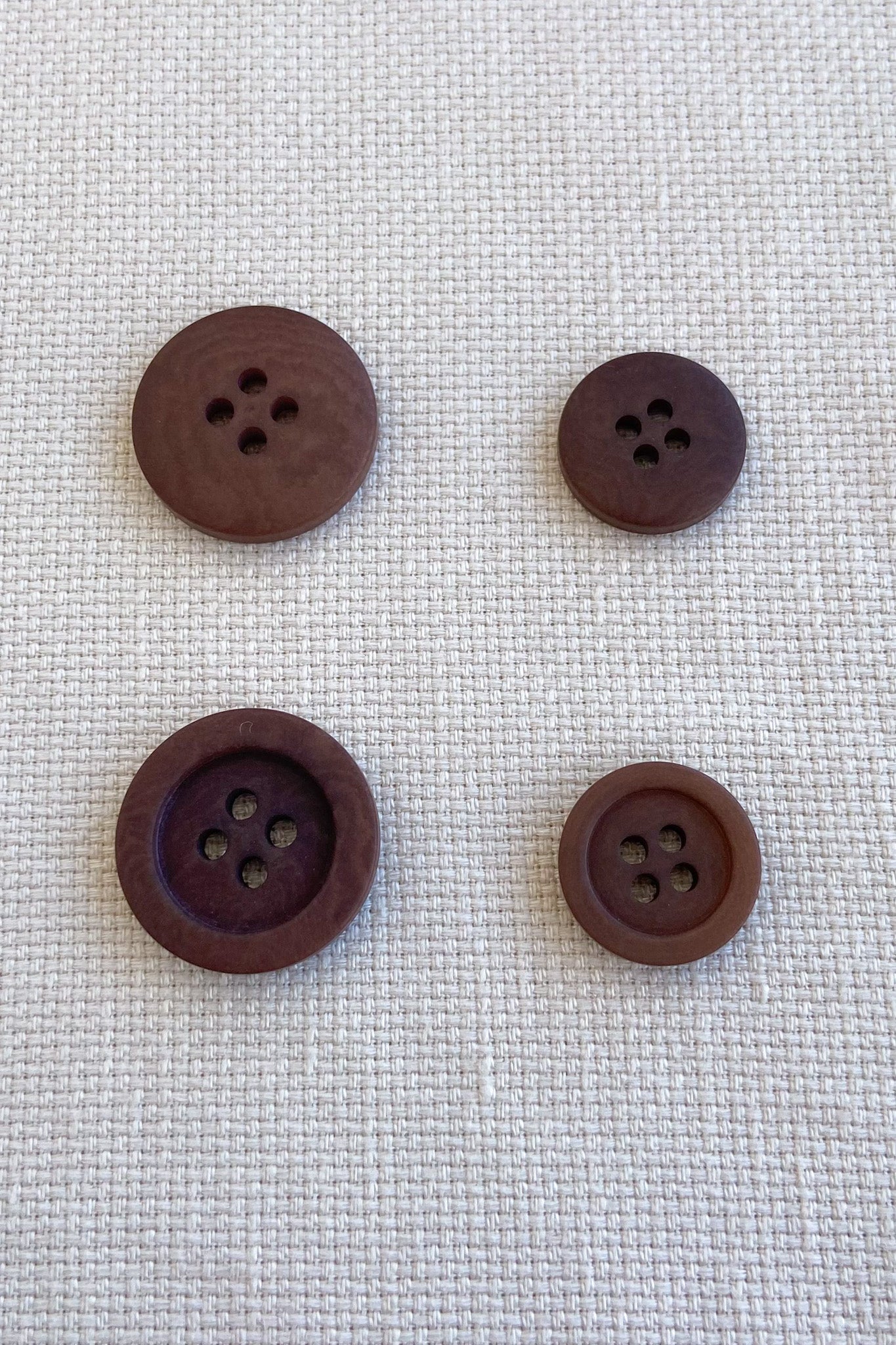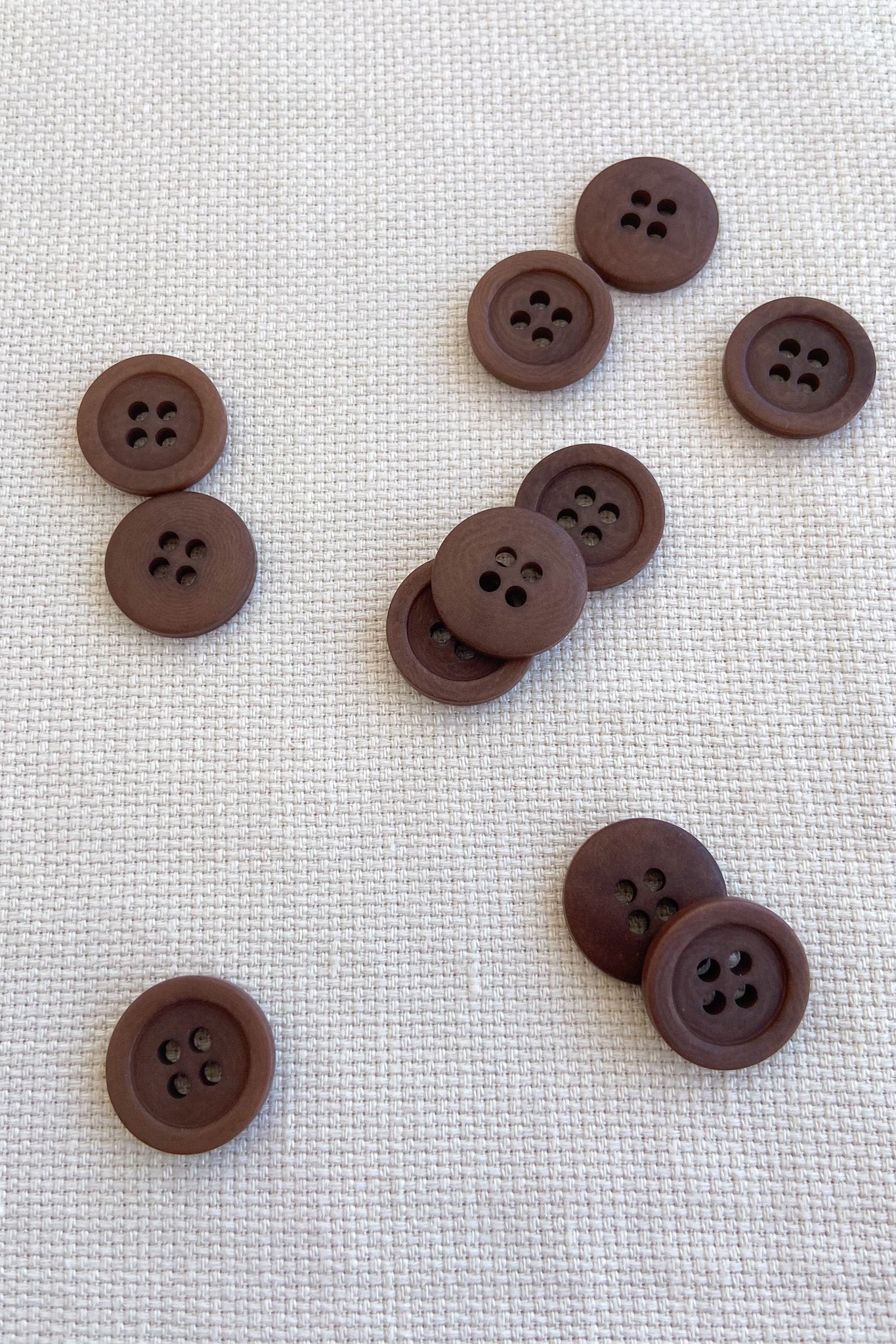 I am a classic 4 hole button with a raised edge made from 100% corozo plant. I look great keeping your pants up or your jackets closed.