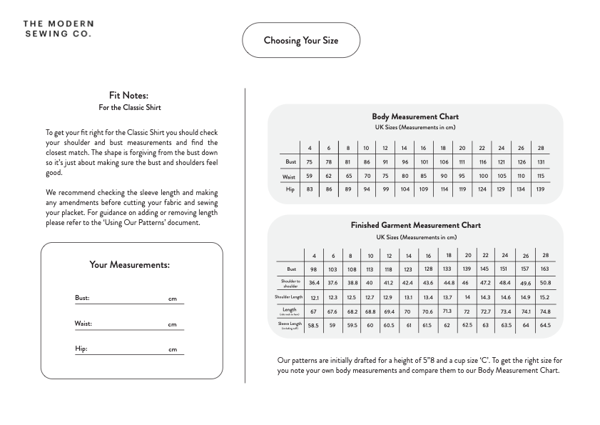 This pattern is available in size range UK 4 - 28.