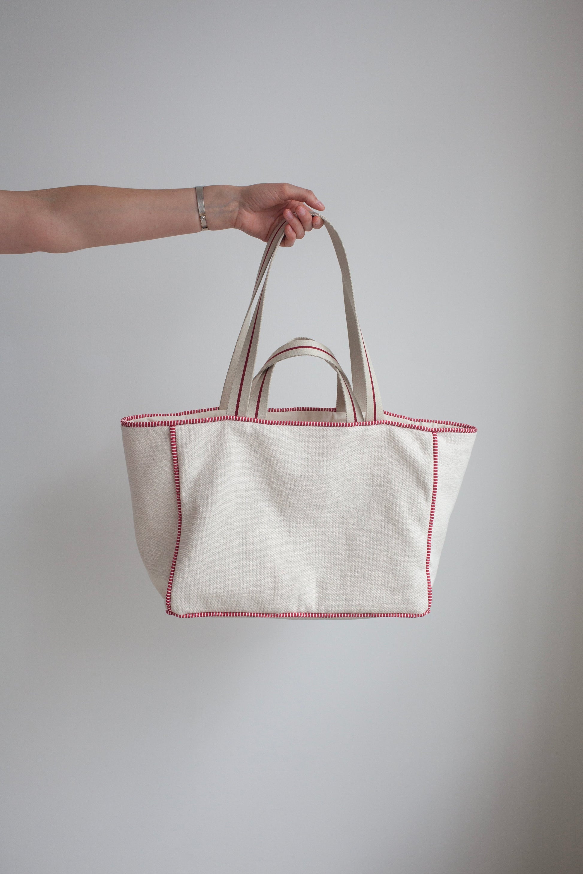 Recommended Fabric: Fabric options are endless and can be selected based on season, style, colour or texture. However, consider main and lining fabrics that are sturdy to ensure durability and to give the bag good shape. Choose main fabrics around 300-450gsm and lining fabrics around 250-350gsm.