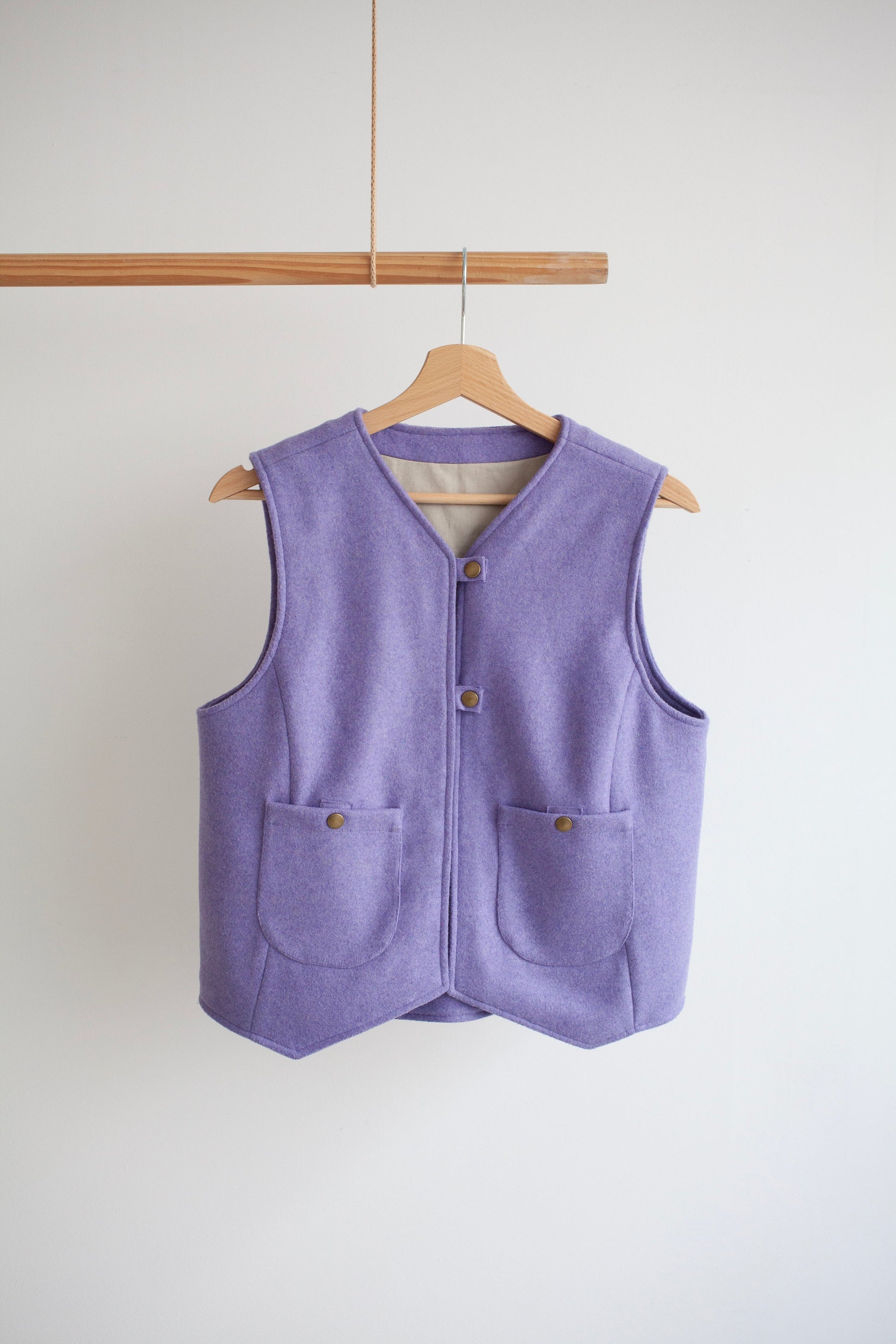 The Devon Waistcoat is a versatile, stylish layer no matter the season, with a relaxed fit and unique design features. The fastening options give each piece a different personality and the lining enables extra cosy winter versions or a lightweight summer finish, which could even be reversible.