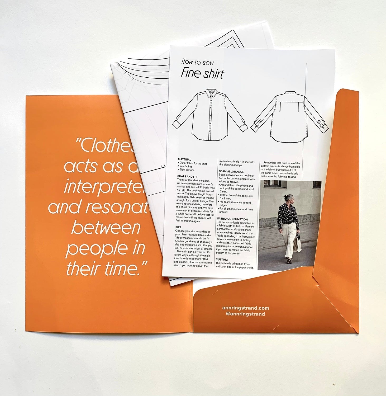 The Fine Shirt by Ann Ringstrand is an updated classic shirt style with a straight fit. It features full-length shirt sleeves, ending at the wrist with slightly wider cuffs and an off-centre cuff button. The side seams are straight and the body does not include chest darts to reflect a more unisex design. There are no chest pockets for a cleaner, less traditional look.