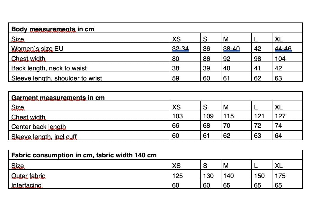 Sizing + Fabric Consumption: Please refer to the charts in the images