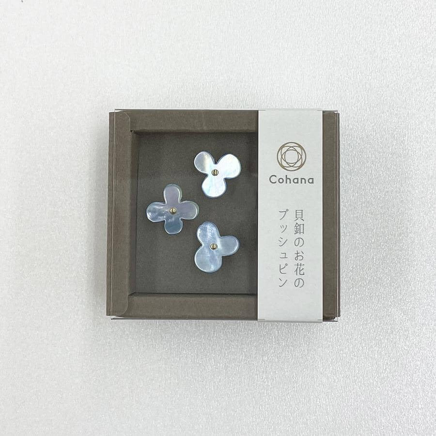 I am the prettiest set of three iridescent, flower-shaped push pins in blue. My button is cut from the Akoya shell, or mother of pearl, in a gentle design reminiscent of hand drawn flowers. Combined with the natural curves of the original shells, each piece is unique in its beauty.