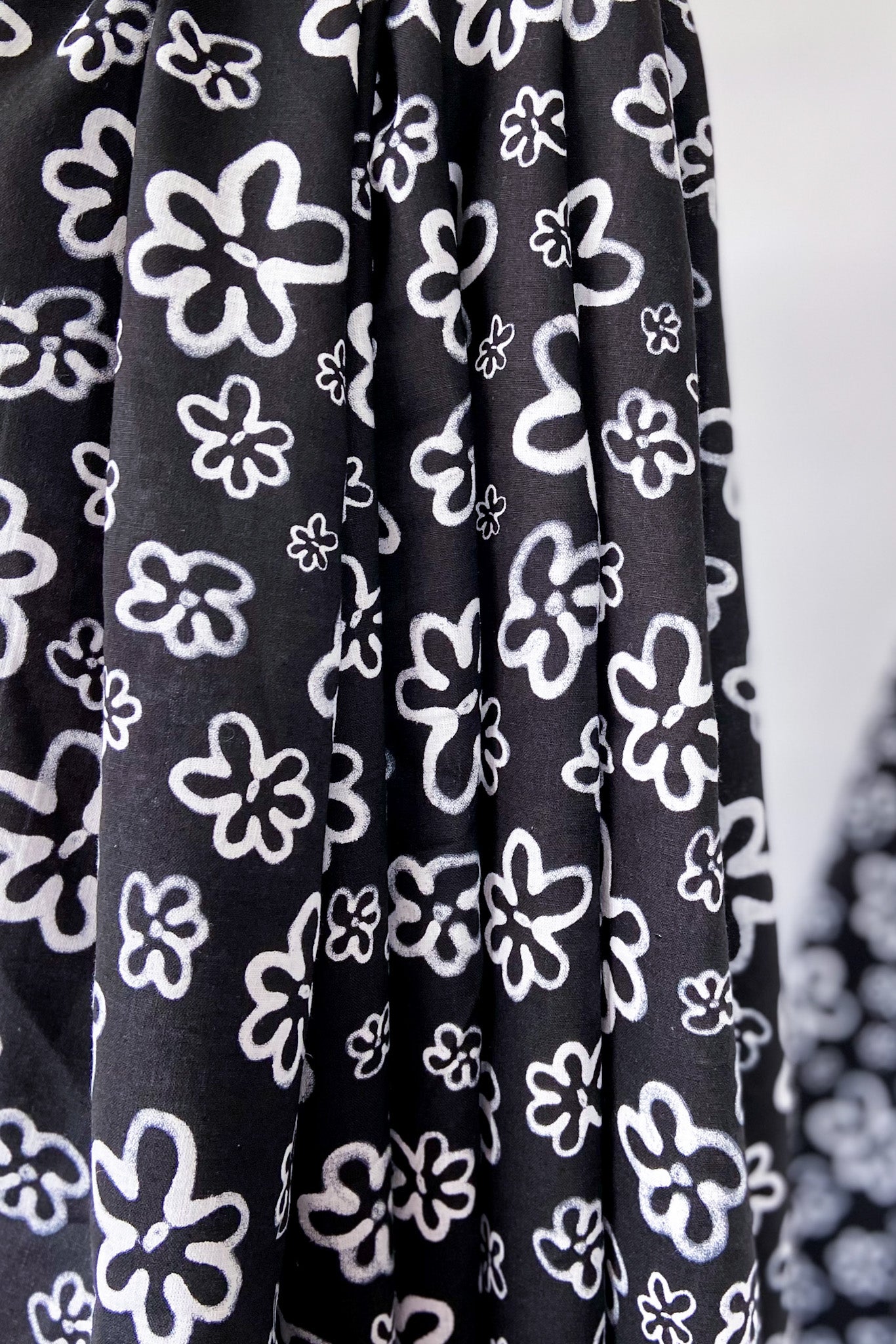| Colour | White flowers on black |