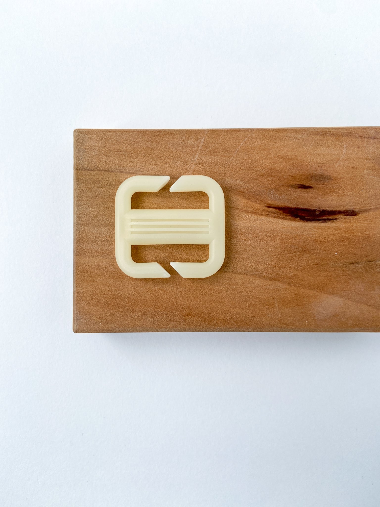 Meet the next generation in lingerie, bag and accessory hardware made from 100% bio-based material. These ladder locks look, feel and perform like their synthetic counterparts but are 100% plastic-free and will decompose safely at end-of-life.