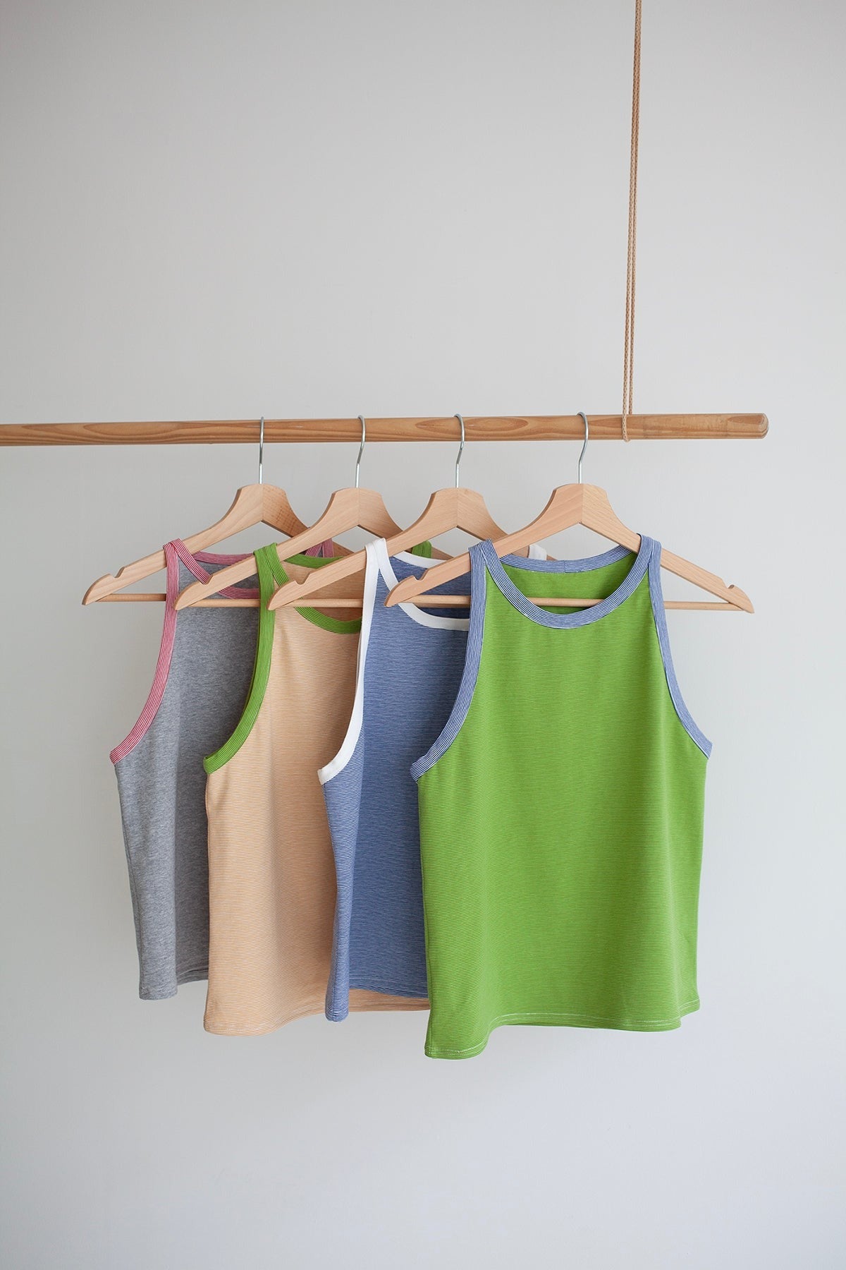 The Racer Vest is a jersey pattern that’s designed to feel like a second skin. The high neck and narrow shoulder gives the piece a sporty feel and the low scoop under the arms gives you the breathing space to avoid sweaty, tight underarms.