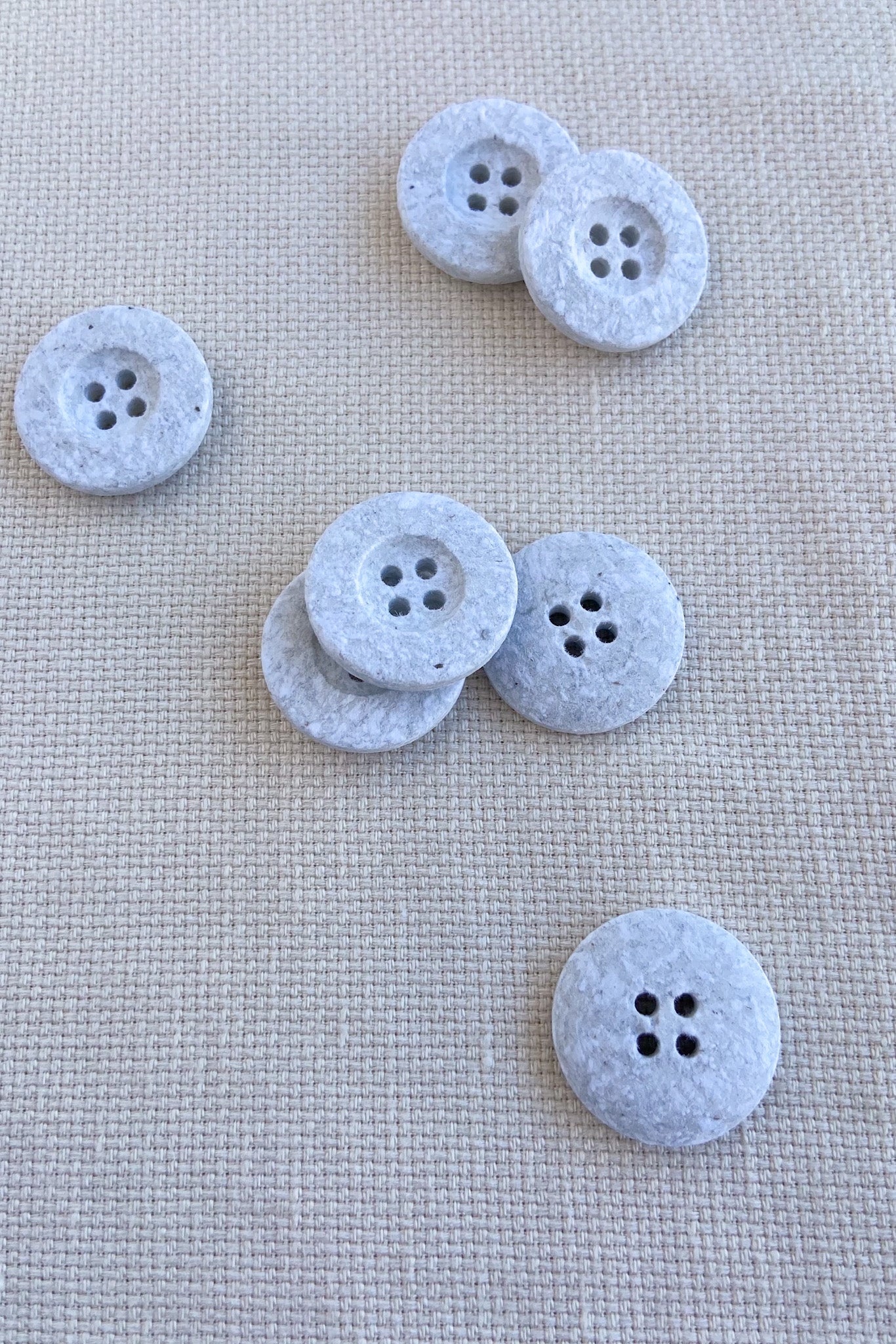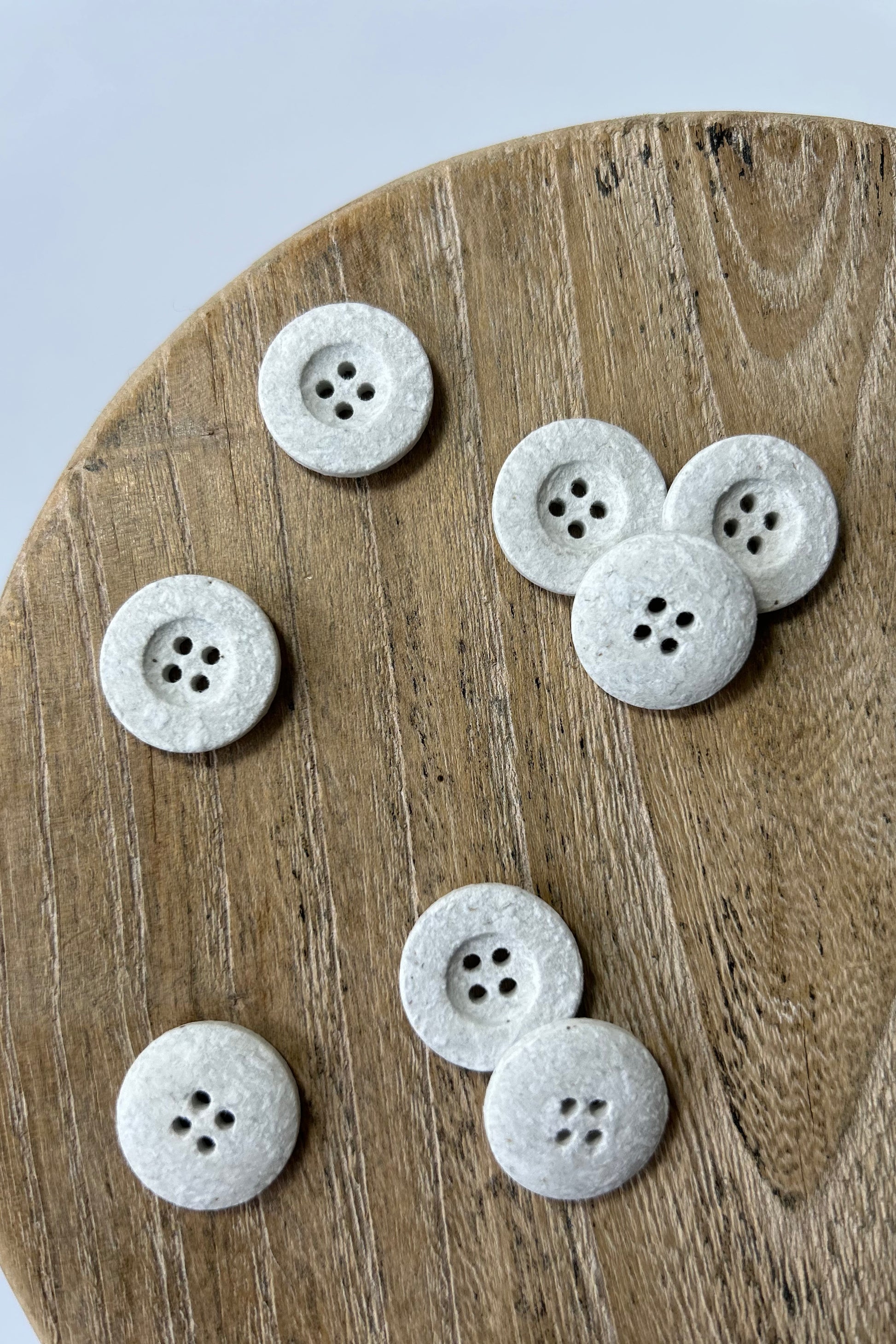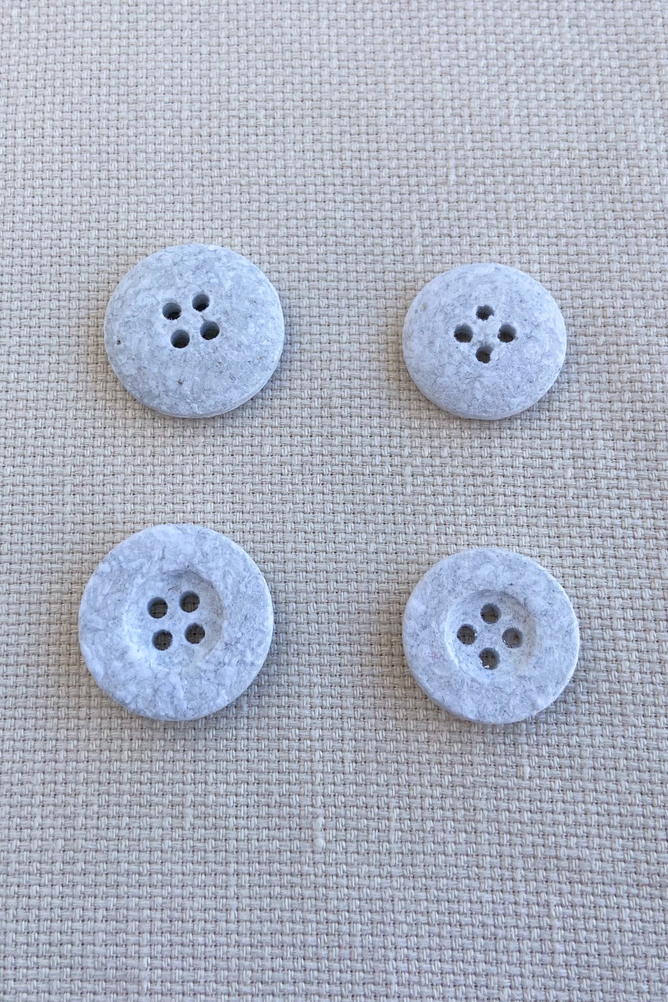 I am a four hole button made with 70-80% recycled cotton fibres. My colour is a speckled off white and pale grey and you will be pleasantly surprised by my lovely soft touch. I’m perfect for keeping your pants up or your jackets closed or I can give your shirts/dresses a unique edge. I am fully washable.