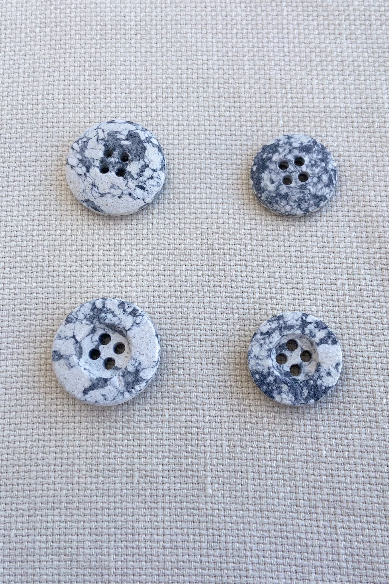 I am a four hole button made with 70-80% recycled cotton fibres. My colour is a speckled off white and dark grey and because I am recycled no two of us look exactly alike. You will be pleasantly surprised by my lovely soft touch. I’m perfect for keeping your pants up or your jackets closed or I can give your shirts/dresses a unique edge. I am fully washable.