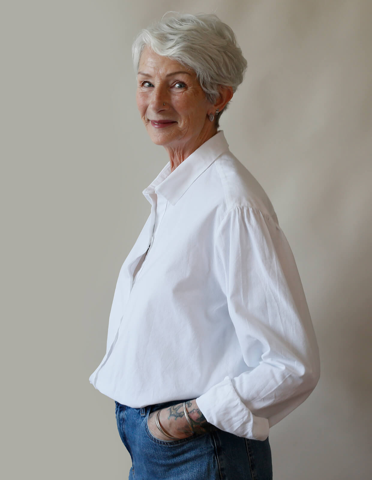 The shirt has three distinct variations - a classic straight back, a pleated back and a gathered back with gathered sleeves. The straight and gathered back styles are longer than the pleated back so they can be worn tucked in.