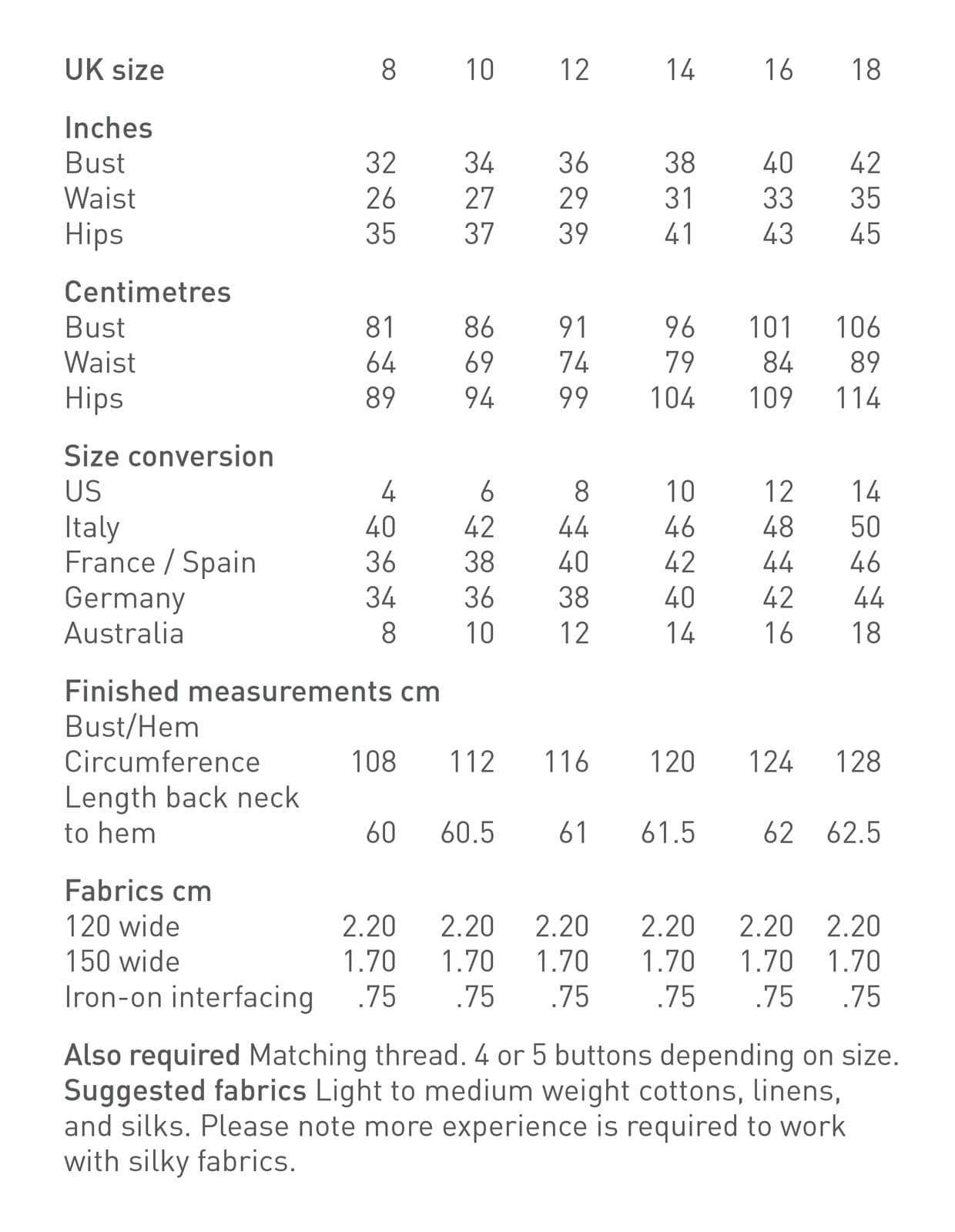 Recommended Fabric: Light to mid weight woven fabrics such as cotton, linen, hemp, tencel and silk.