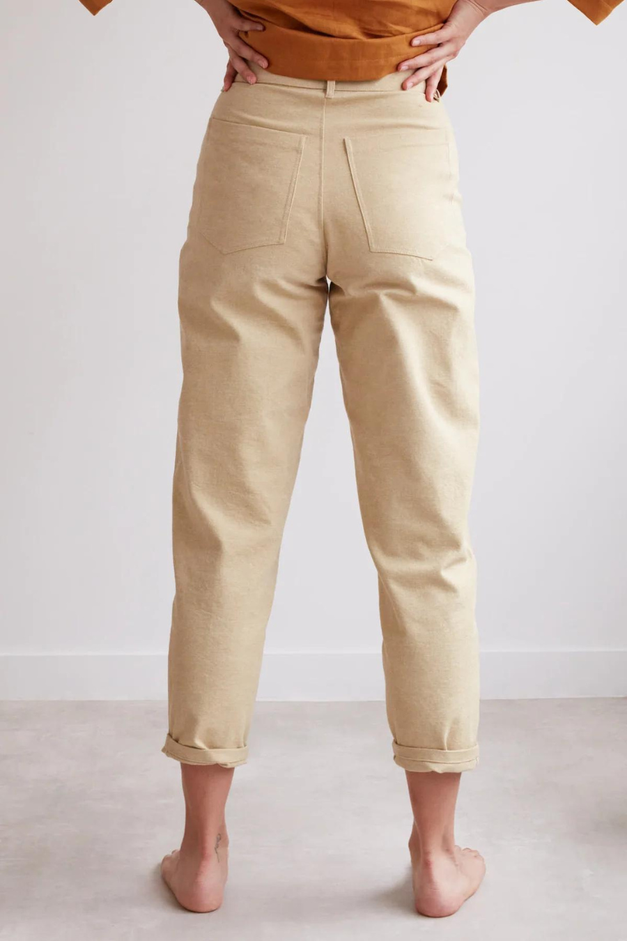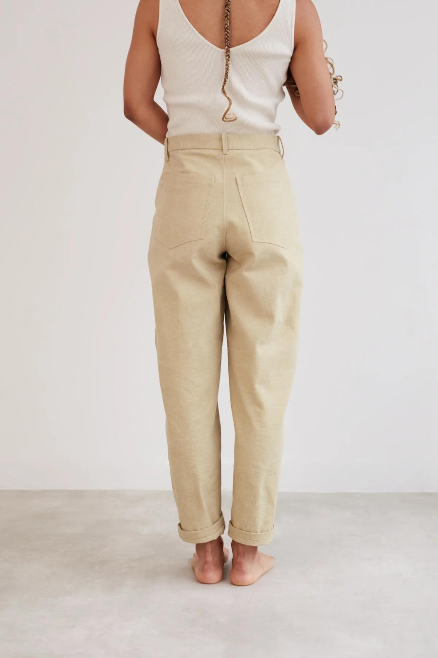 The Worker Trousers are a casual style trouser that works very well as an alternative to jeans all year round. The fit sits snuggly around the lower waist and balloons slightly around the upper thighs before tapering in again towards the ankles.