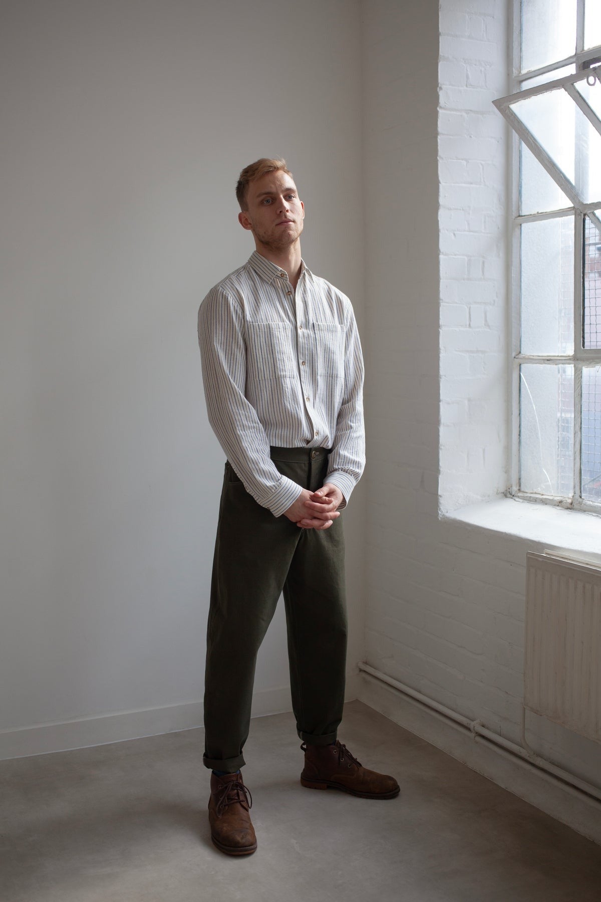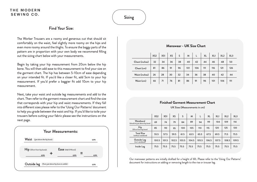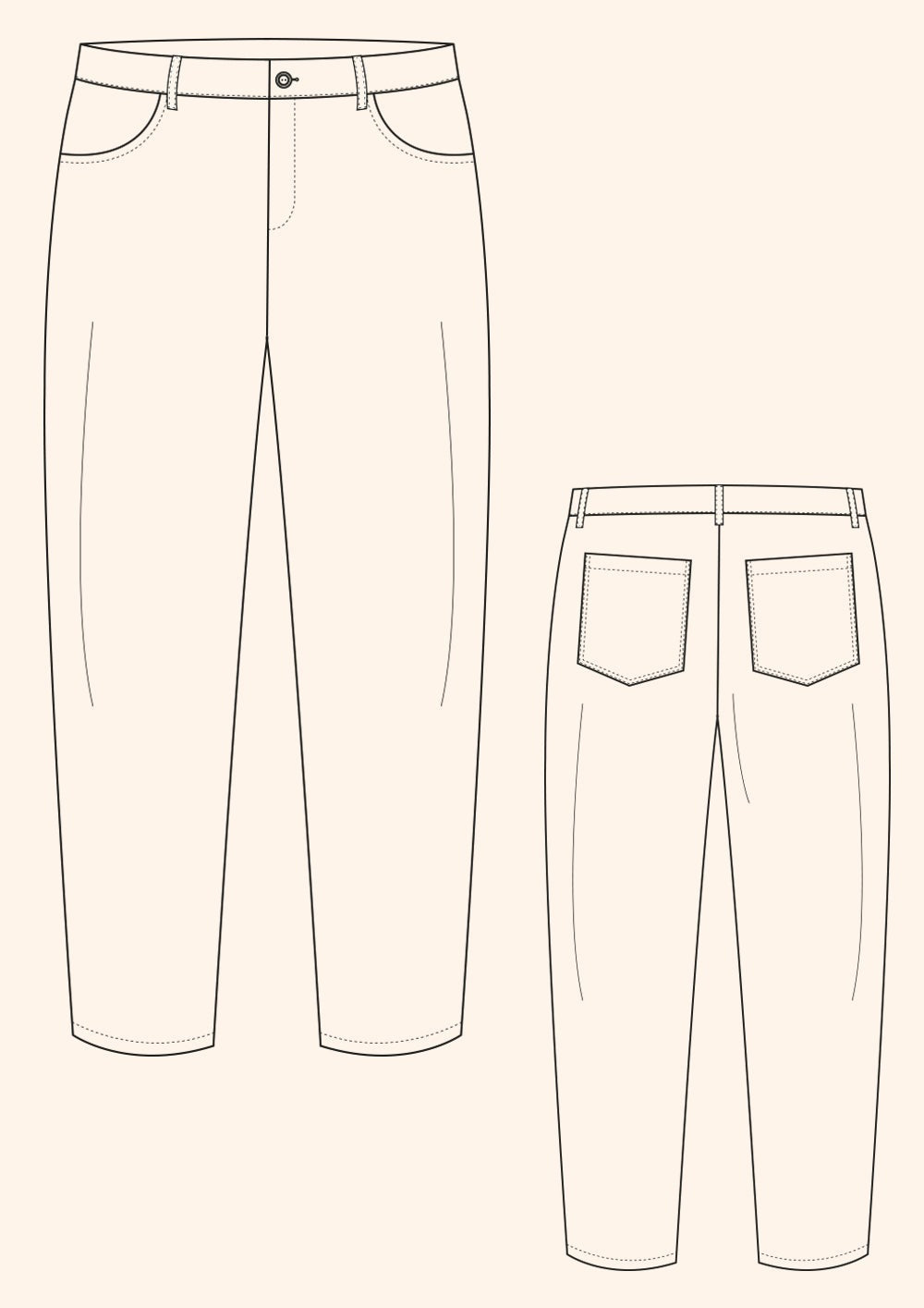 Hetty's best selling pattern now available in a menswear cut! The Worker Trousers are a casual style trouser that works very well as an alternative to jeans all year round. The fit sits snuggly around the lower waist and balloons slightly around the upper thighs before tapering in again towards the ankles.