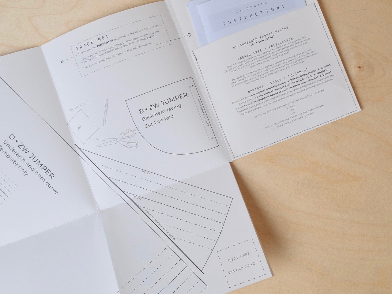 *Paper Sewing Pattern. You will receive a printed workbook measuring 20cm x 25cm. The folder is designed as a zero waste layout on A2 card which opens out to include traceable templates and a handy storage folder containing the instruction booklets for both the sewing and cutting steps.